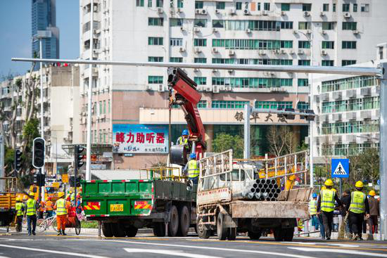 工人们奋战在一线。