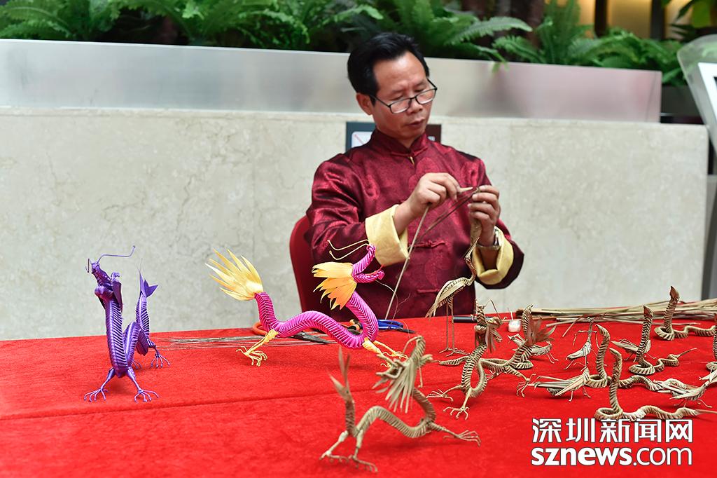 活动现场的草编艺人正在编织各种工艺品,草编在中国分布很广,主要产区有山东、浙江、广东、河南等地,在2008年入选第二批国家级非物质文化遗产名录。