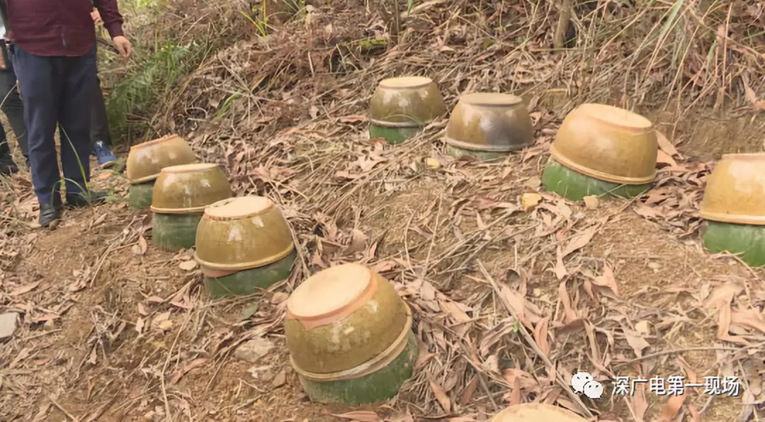 据了解,这种将逝者遗骨三五年后挖出来装坛,埋在路边或山上的殡葬方式在民俗学上叫“迁骨葬”,在客家人聚居的区域十分常见,而这种装遗骨的陶瓷做的坛子也被俗称为“金塔”或者“金坛”。按照这两座坟地的规模,可以获赔约11万元。