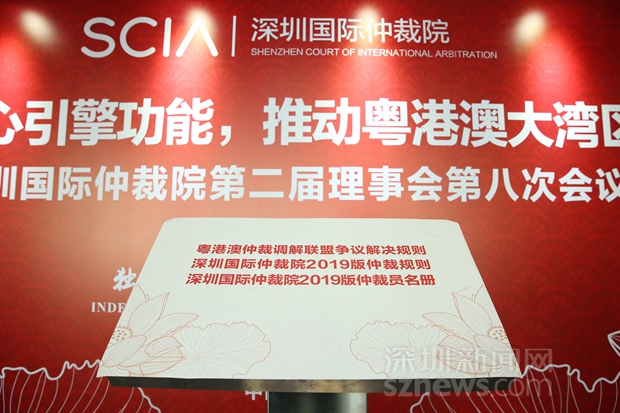 2月21日的发布会上,深圳市副市长黄敏为新聘任的两名深圳国际仲裁院理事袁国强(香港前律政司司长)、刘春华(中联办法律部部长)颁发了聘书。