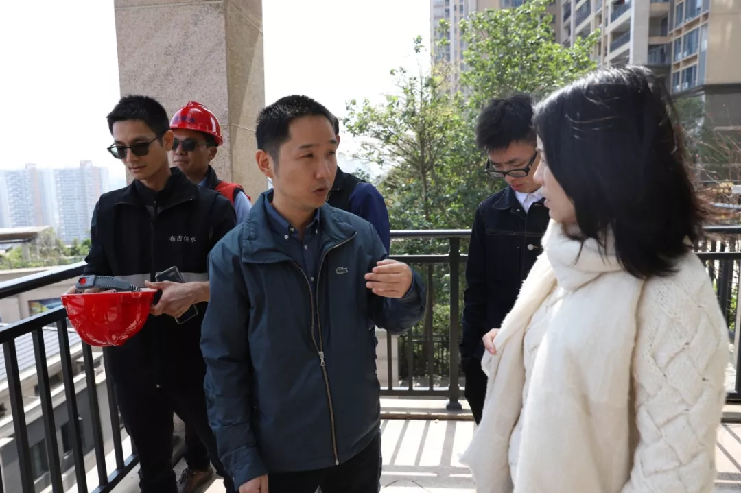 ▲水务局工作人员与紫瑞花园业委会代表进行沟通