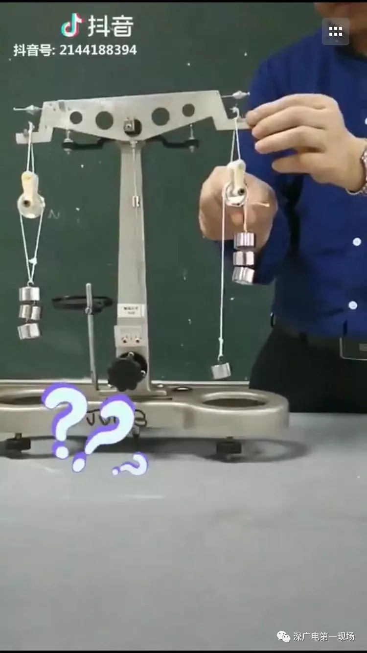视频中的主角,是深圳市第二实验学校的黄正玉、郑景华、冯雅琪三名物理老师,这个视频是一段物理教学实验短视频,名为《3+1=3?》。