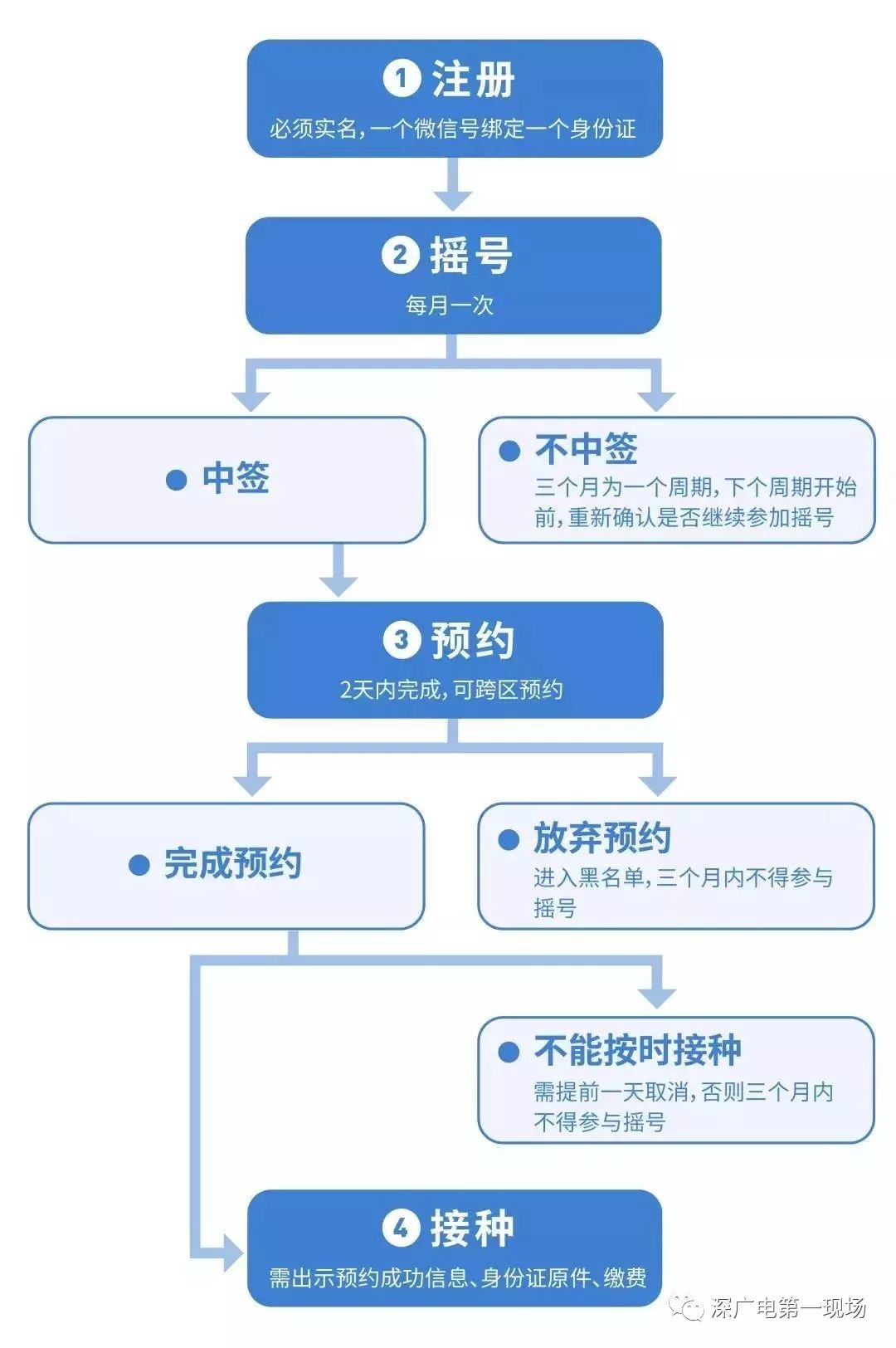 2月27日9:00-2月28日22:00,中签者须进入“深圳卫健委”微信公众号摇号系统,预约接种疫苗的时间、地点。逾期没有预约的将被关进“小黑屋”,6个月内不能参加摇号。