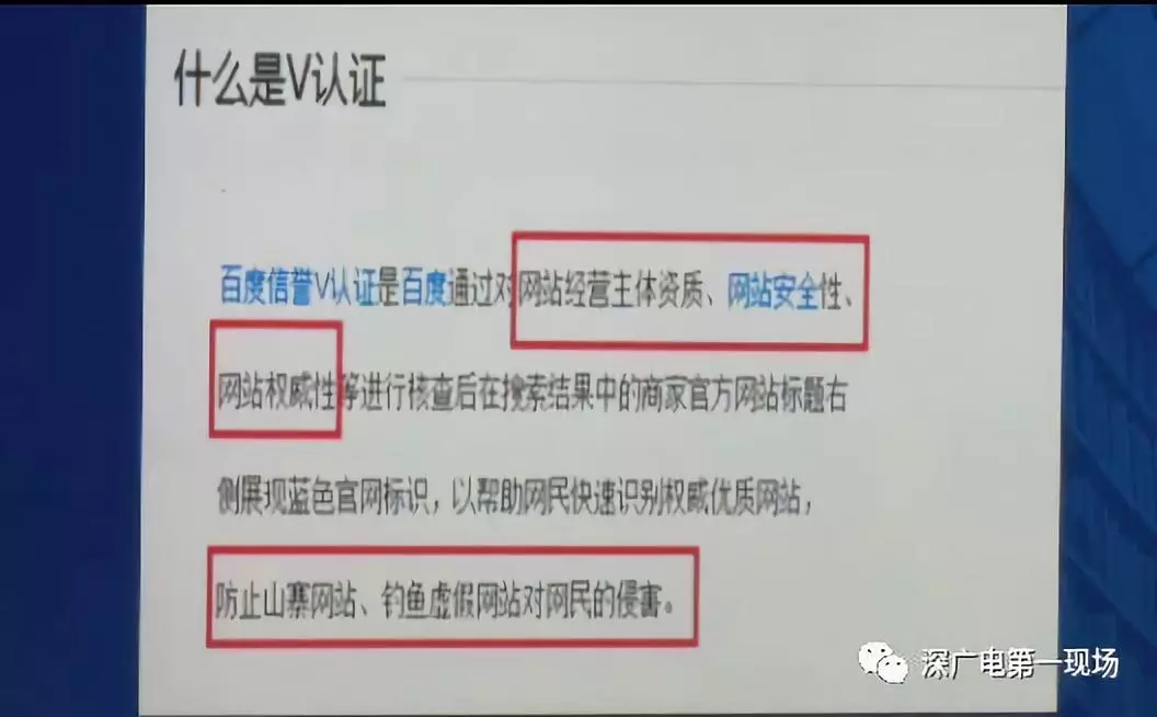 百度信誉V认证,是百度通过对网站经营主体资质、网站安全性、网站权威性等核查后,在搜索结果中的商家官方网站标题右侧展现蓝色官网标识,以帮助网民快速识别权威优质网站,防止山寨网站、钓鱼虚假网站对网民的侵害。