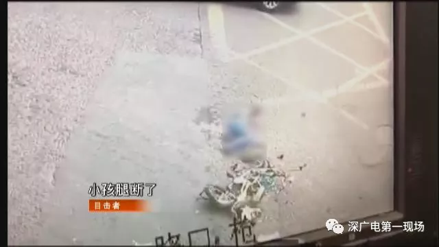 监控画面右下角能看到几乎被碾碎的电动车和摔在地上的学生,学生躺在地上挣扎,似乎左腿已不能动弹。