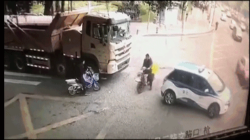 深广电第一现场2019年2月27日讯 昨天,一段泥头车碾压骑车者的监控视频让不少市民揪心,事故造成1死1伤。