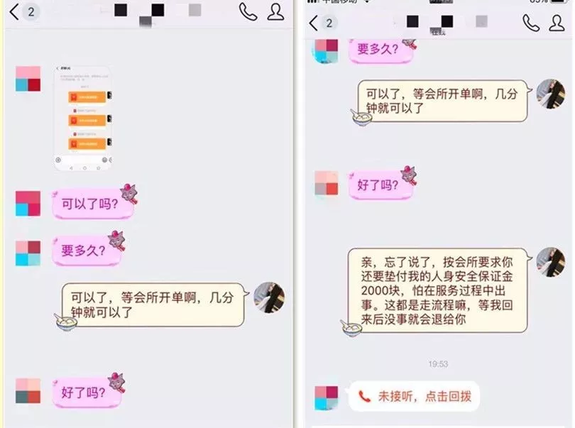 入宝山岂能空手回。已经身在酒店的小李再次打开附近的人,添加好友、一番服务费押金转账之后,还是没有等到“小妹”踪影。