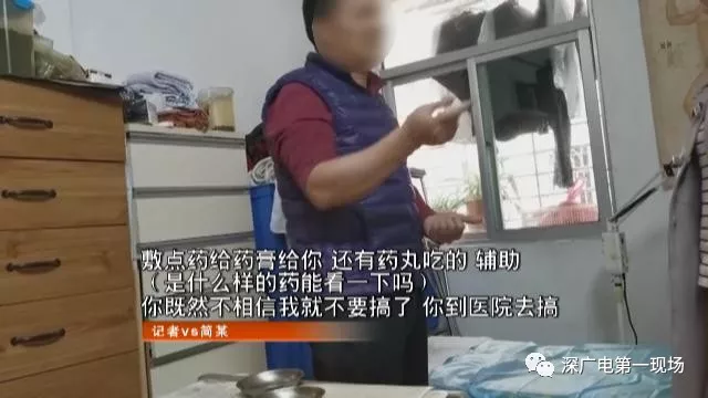 这套房子是三房一厅,有2个卧室1间治疗室和厨房,跟住家一样,没有任何跟看病有关的招牌或宣传字样,在客厅里有看似大玻璃瓶泡的药酒,和很多看似草药的东西。其中一间房是治疗室,有中药柜和药罐,还有一张按摩床,墙上贴有穴位图。听了记者描述病情后,简某在记者肩部及腰部简单按压,表示这些问题难不倒他,他完全可以治。
