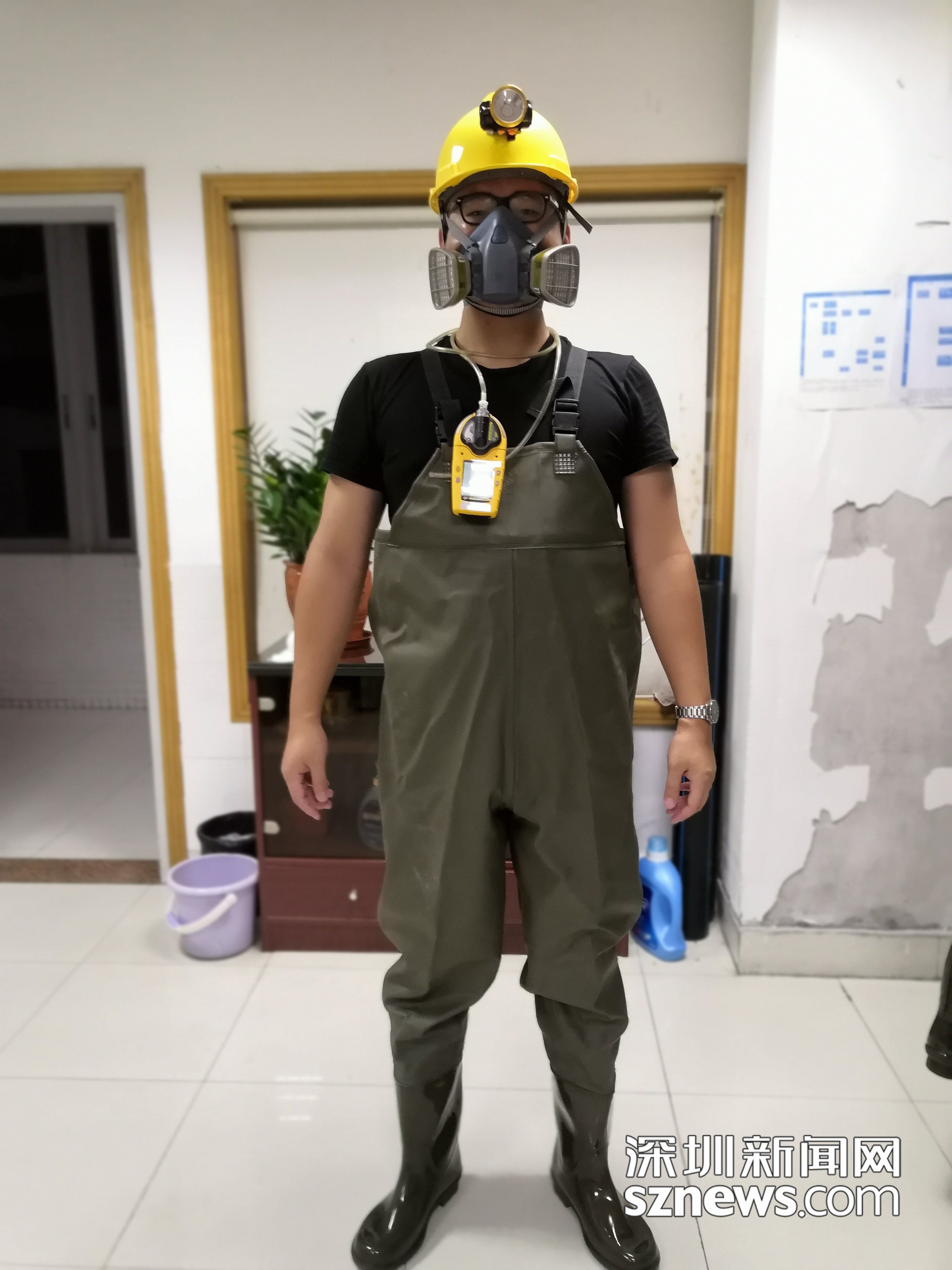 安全帽,水衣、水裤、头灯,王经波一样一样给记者展示自己的老伙计,下井前长达几小时的通风磨炼出他比常人更好的耐性。