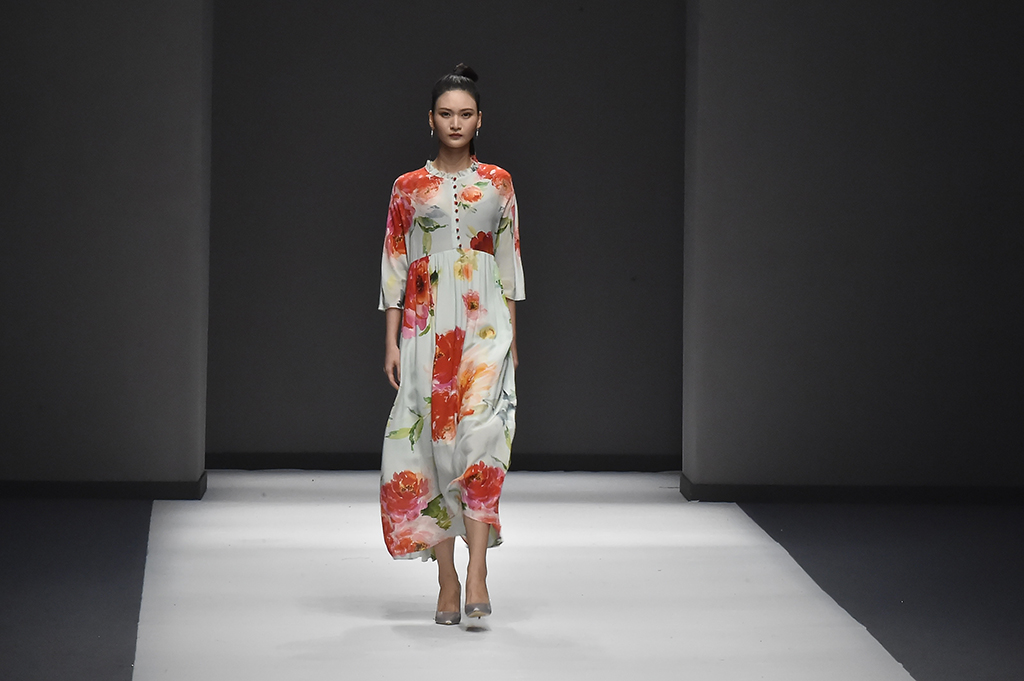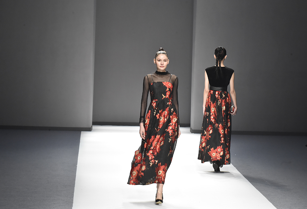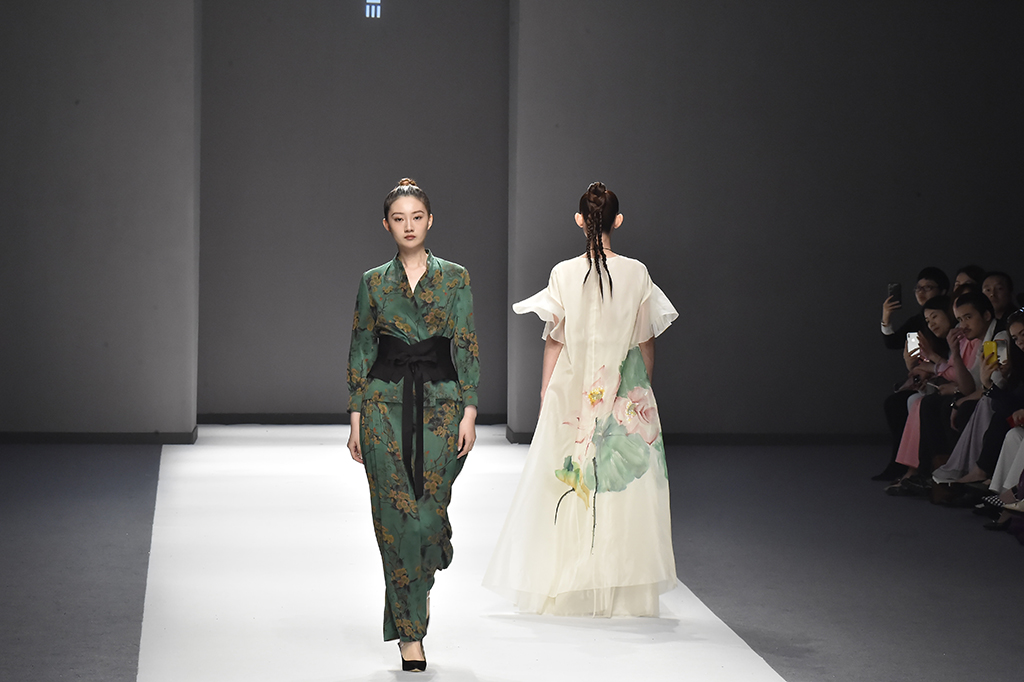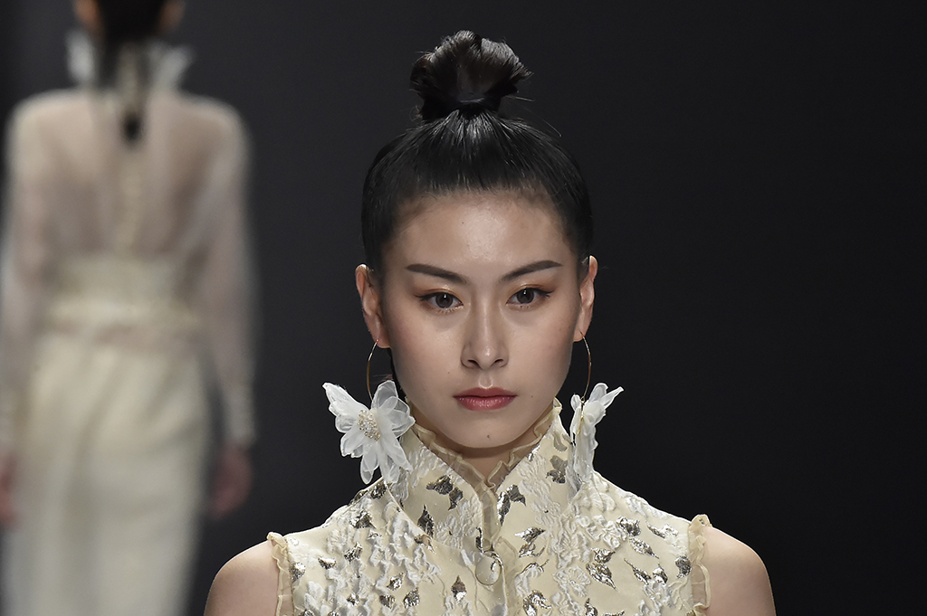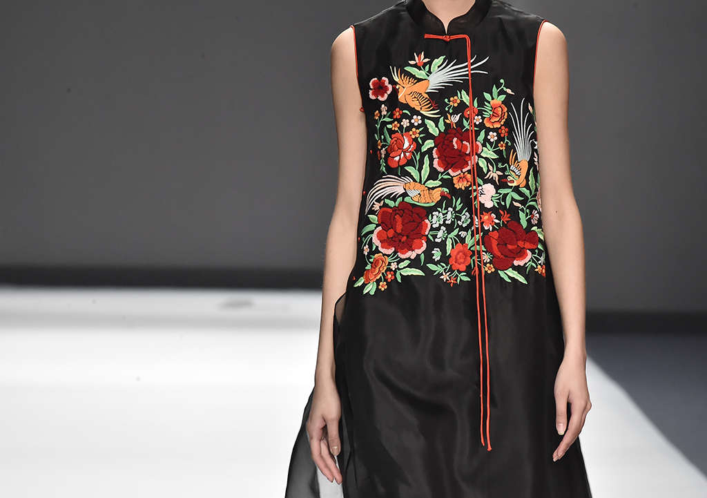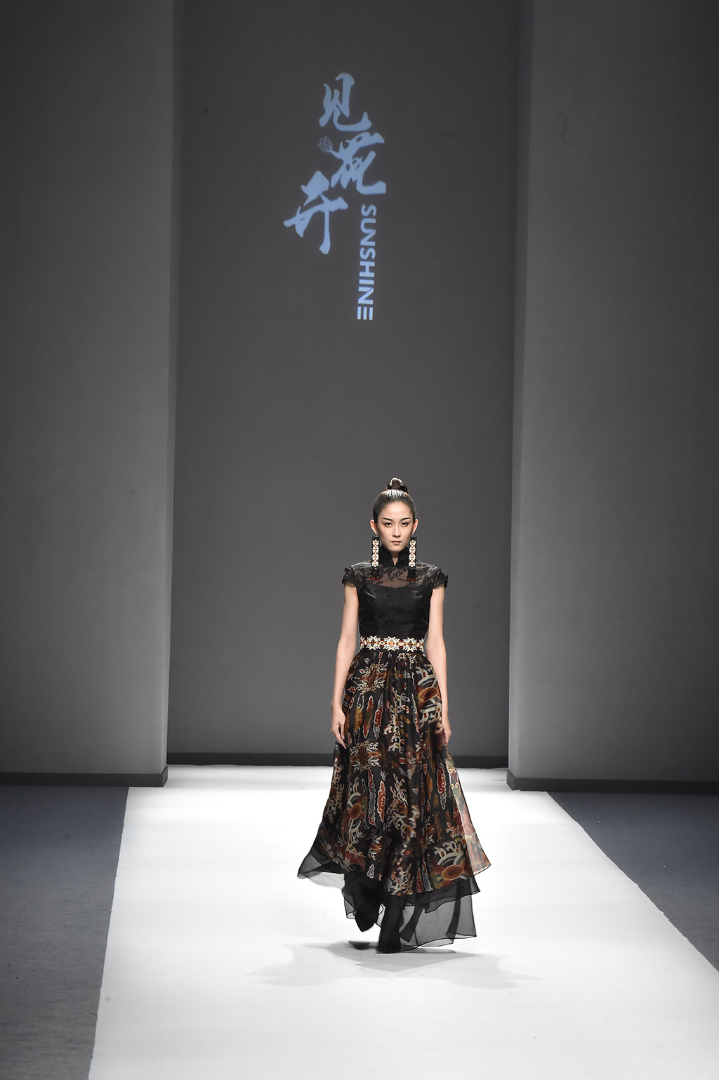 模特正在展示品牌Sunshine见花开的服装花朵作为设计的一部分凸显东方美感