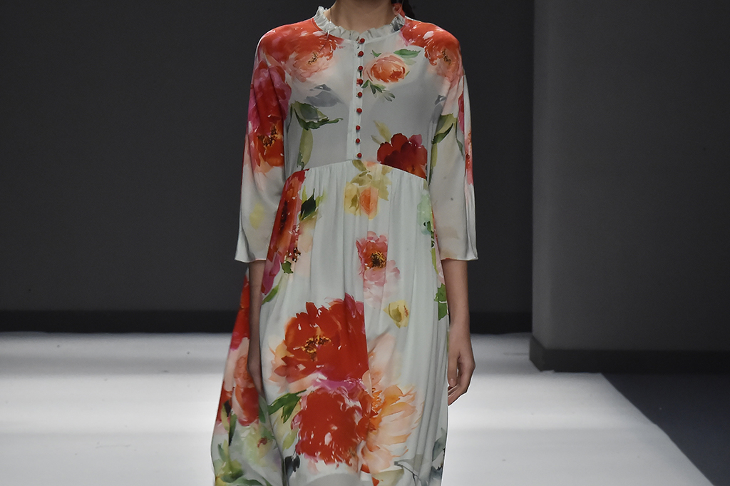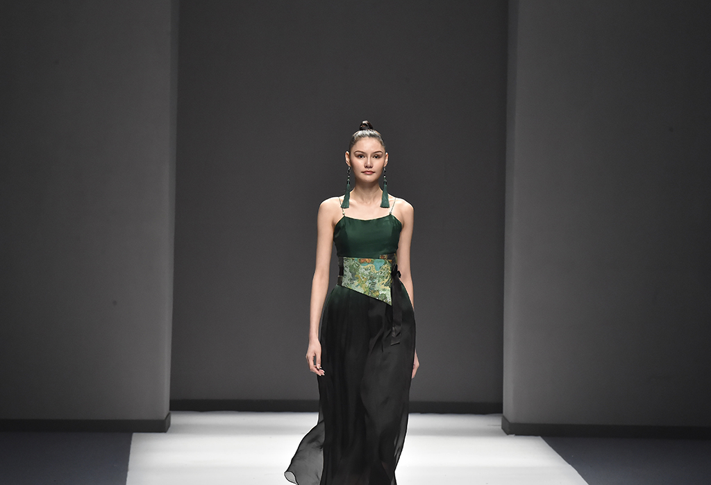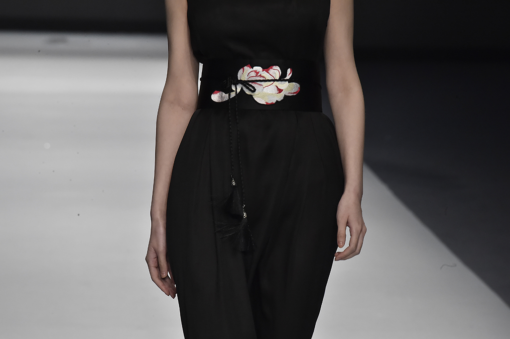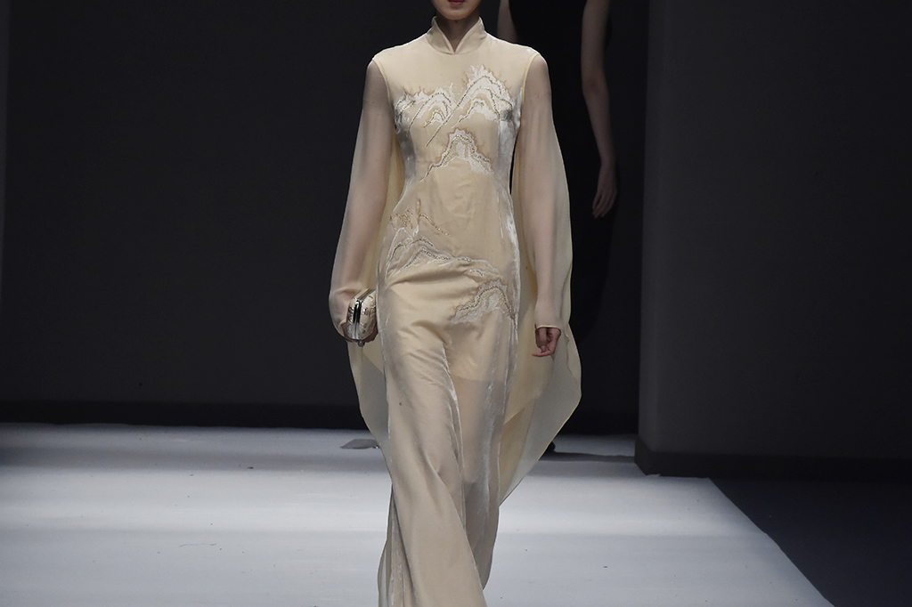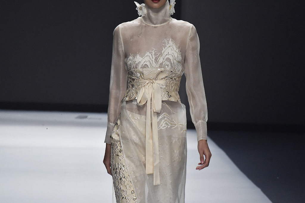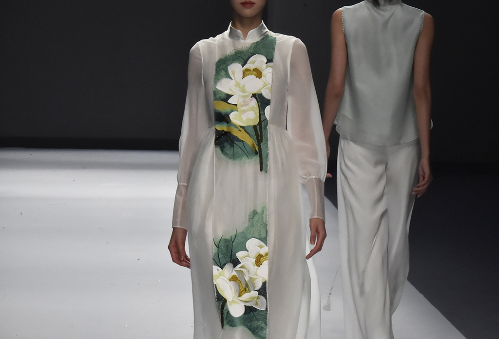 模特正在展示品牌Sunshine见花开的服装花朵作为设计的一部分凸显东方美感