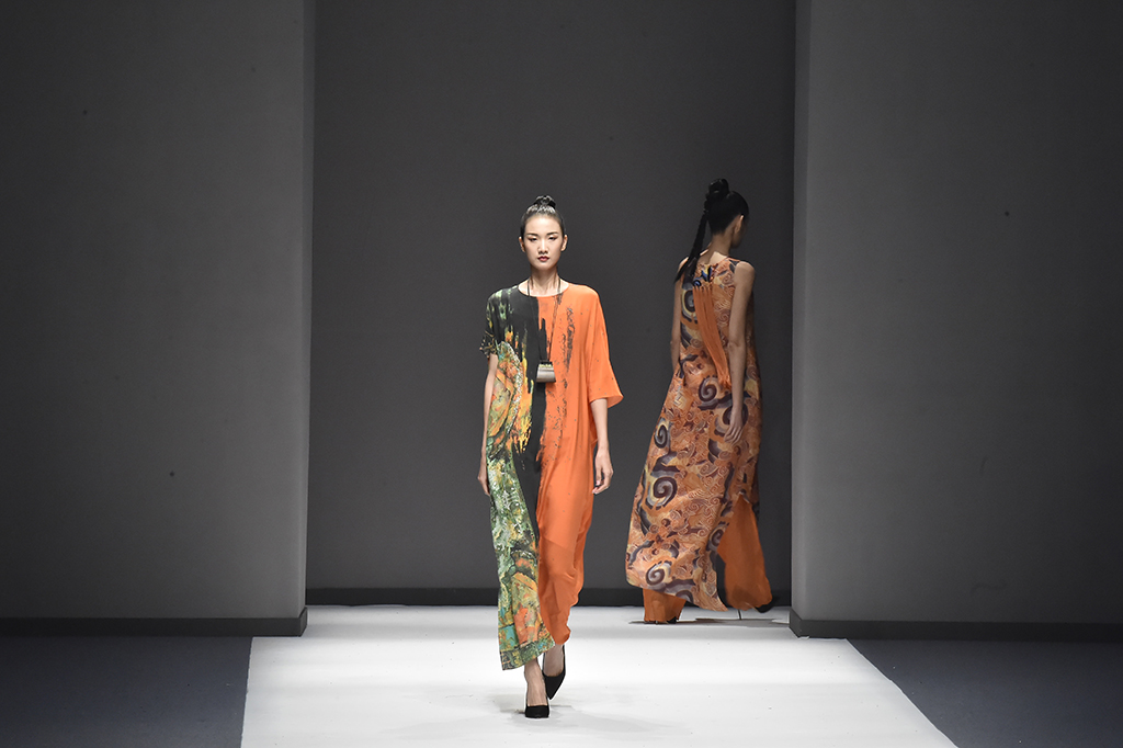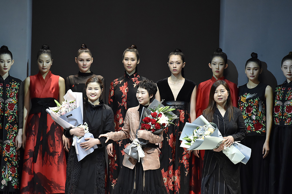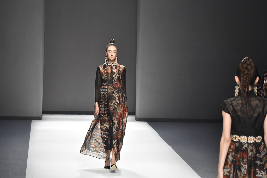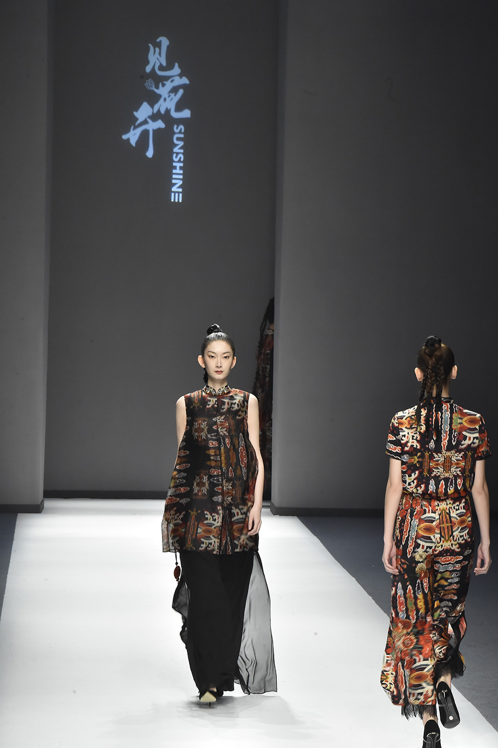 模特正在展示品牌Sunshine见花开的服装服装凸显东方特色