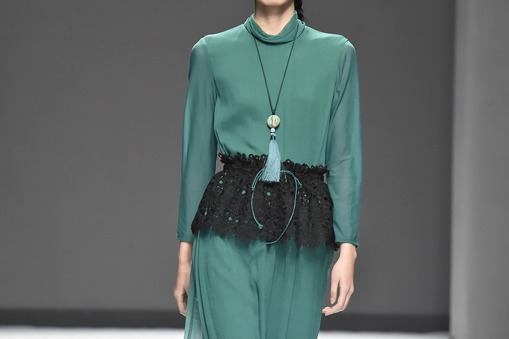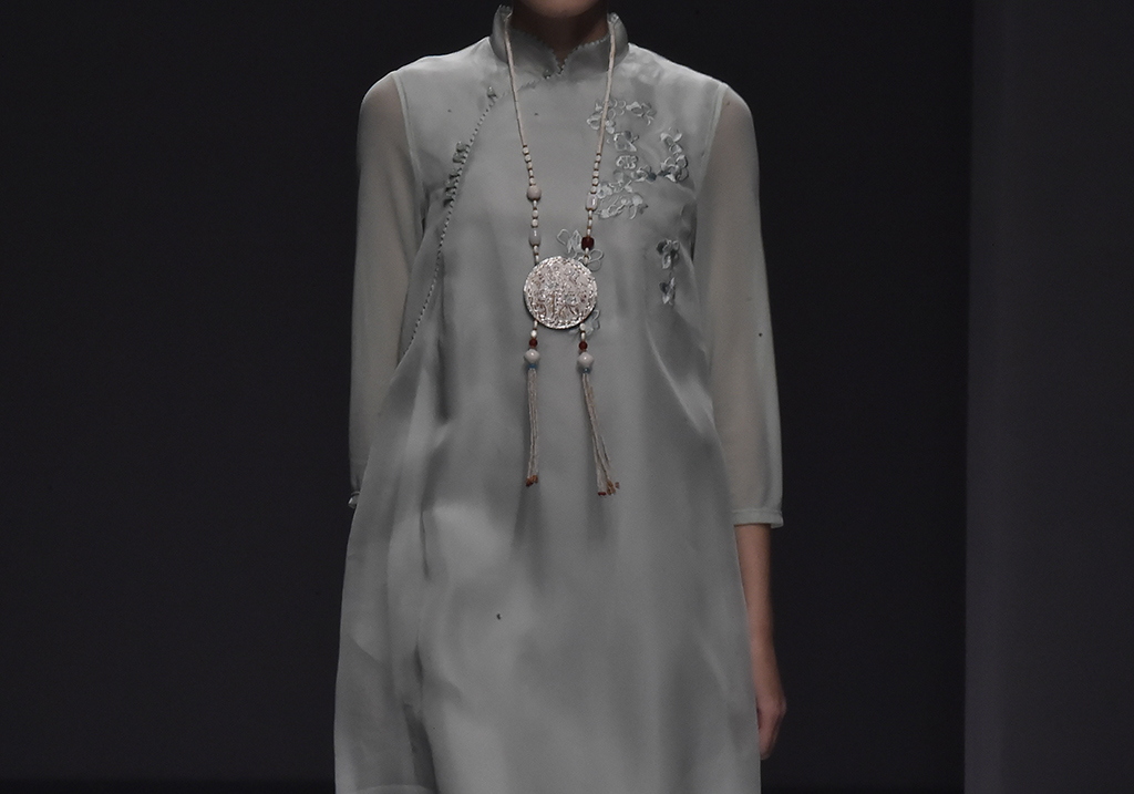 模特正在展示品牌Sunshine见花开的服装服装带有东方美感