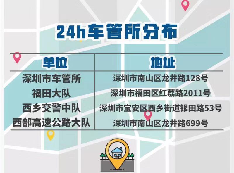 地址:南山区龙井路128号深圳市公安局交通警察支队车辆管理所一楼西侧