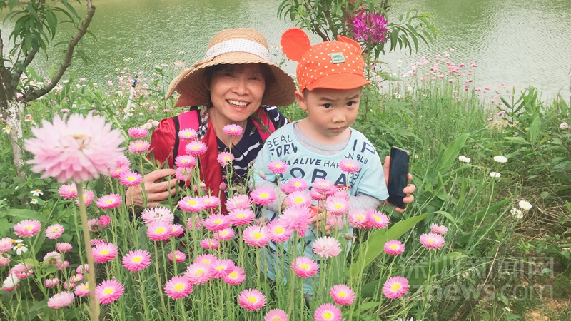 赏花遛娃两不误