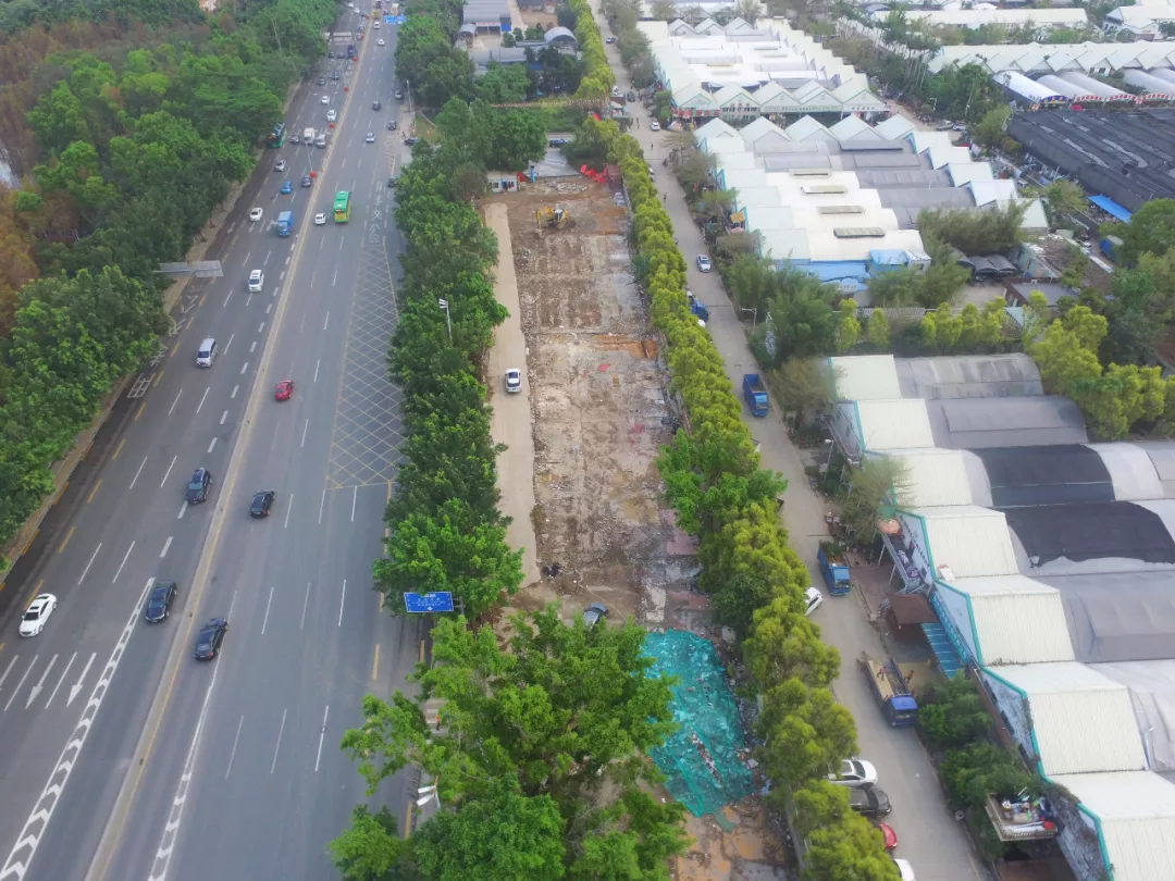 留仙洞站——白芒站区间(下称留白区间)全长4.6km,采用双模(TBM)盾构法施工,区间设联络通道8座,中间风井一座。留白区间中间风井纵向长度34.6m,宽度26.5m。风井东侧紧邻沙河西路,西侧为深港花卉市场苗圃场简易用房。