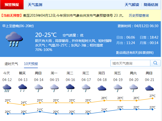 据市气象局统计,截止昨日22时,全市普遍记录到暴雨,局部大暴雨,最大降水出现在光明区圳美,最大小时雨量出现在福田区莲花山站;全市普遍记录到8-9级阵风,全市最大阵风出现在光明区圳美,为9级。夜间23时后强对流天气结束。