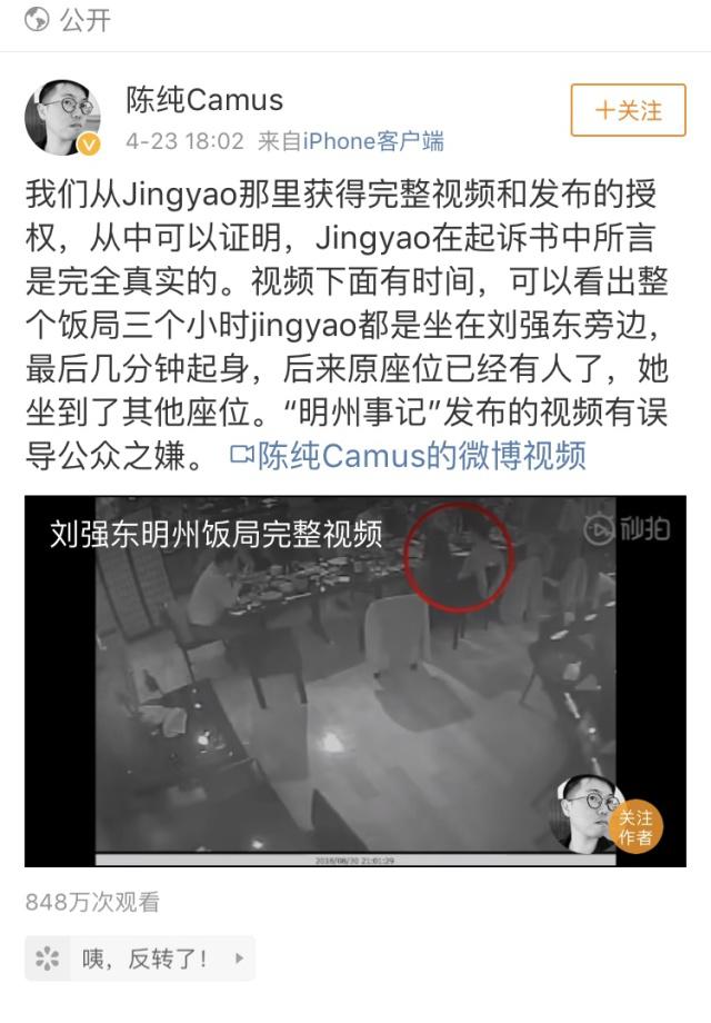 最新消息是,女方的反击来了,她通过友人“陈纯Camus”在微博上发布了刘强东美国律师与其本人的完整录音片段和其他视频(有好奇的围观群众不妨自行度娘,这里不展开叙述)。