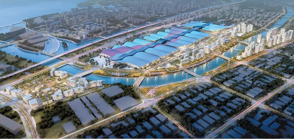 据了解,深圳国际会展中心整个登录大厅区域网壳连同屋面龙骨由12155根构件组成,下部由96根巨型分叉柱支撑,网壳的焊接作业所用的焊丝长度达到2400公里,相当于北京到深圳的距离。