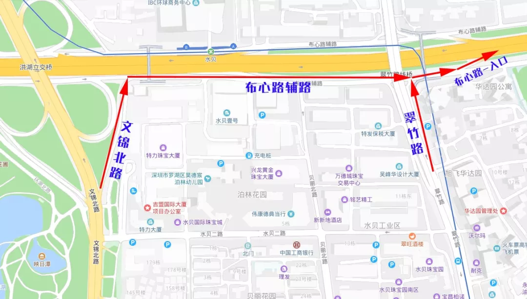 需改经翠竹路处入口进入布心路主路。