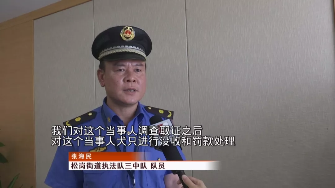 随后,记者也联系了松岗街道执法队,执法人员告诉记者,在接到恶犬伤人案件之后,执法人员第一时间对大型犬进行了调查取证,发现饲养员并无办理养犬证,所饲养的犬类属于禁养的烈性犬,当即就作出了处罚。