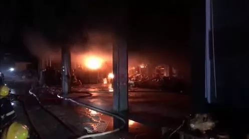 基本可以确定是电焊工误操作导致火灾,由于现场还要进一步降温,过火面积暂还无法计算。