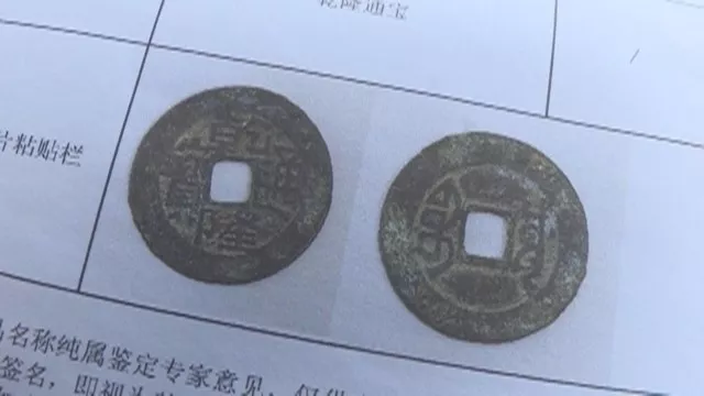 他的宝贝是一枚“乾隆通宝”钱币