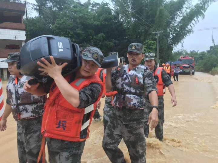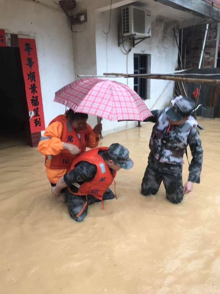 今天上午8时30分起,龙川县人武部出动全体现役军官及民兵队员,分别于老隆镇果园新村,板塘村,大地街,丰稔镇丰联村,登云镇东山村等区域展开救援,转移受困群众300余人,成功解救被困江中心群众1人,并运送矿泉水、饼干等食品物资给受灾群众。目前救援还在继续。