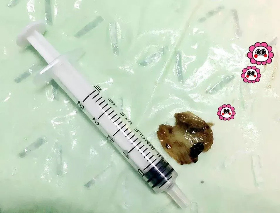 随后,肛肠科医生在黄某直肠内成功取出一圆片状鱼骨,约2.0*2.5cm大小,边缘锐利,已经割破了直肠腔间的多处黏膜了。