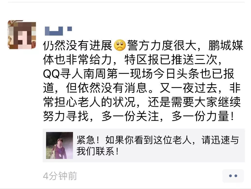 读特、深圳特区报微信公众号发出寻人信息后,网友们纷纷在朋友圈转发,希望更多人看到信息,多一份力量。