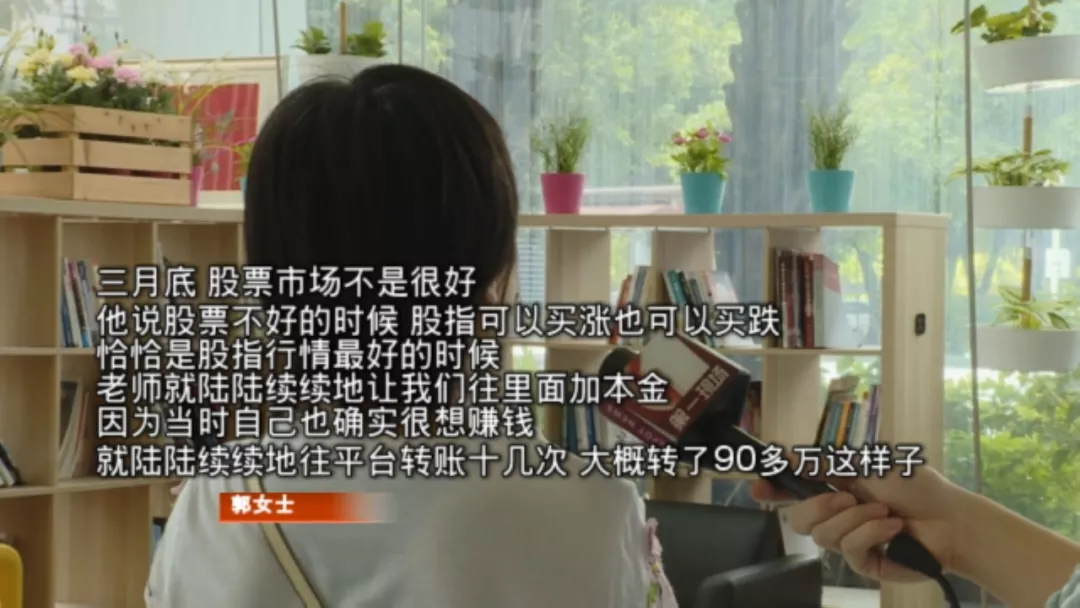 和朋友交流后,意识可能被骗,四月中旬郭女士和朋友聊起了自己在学习炒股这事儿,朋友觉得郭女士可能遭遇了骗局,建议她到派出所报案。