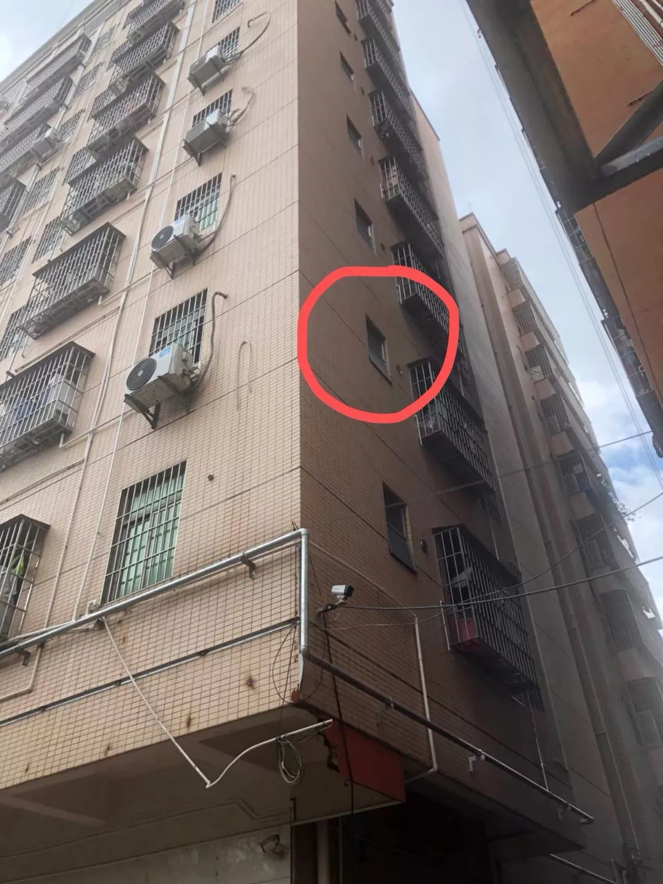 ▲红圈处为女孩坠楼窗口
