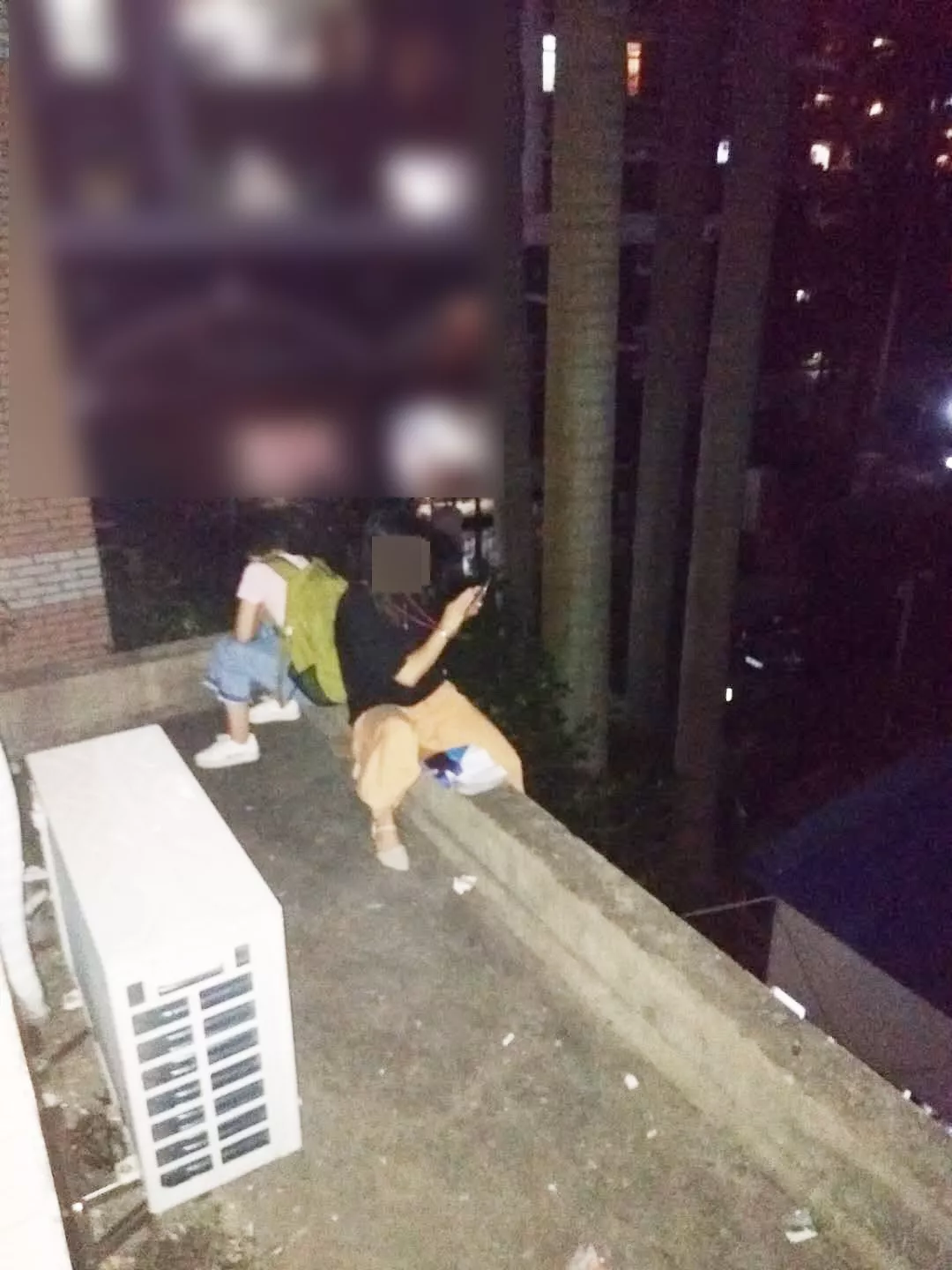 两名女子蹲坐在离地面10多米的窗外平台,频频做出要向下跳的动作,且不让任何人靠近,非常危险。这时,刘智所长来到窗边,表明身份,跟窗外的两名女子沟通,现场初步了解到二人因投资受损,产生了轻生念头。