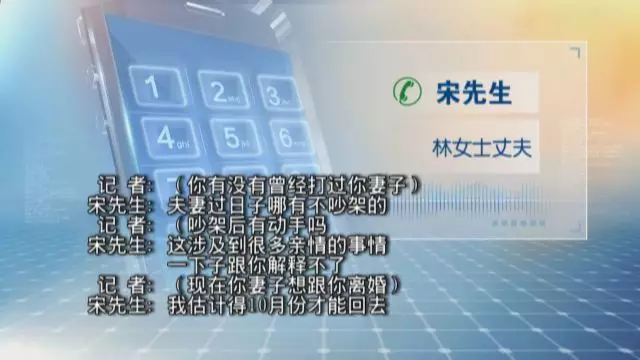 为了核实林女士的说法,记者拨通了林女士丈夫宋先生的电话。宋先生没有承认家暴事实,回应的是相当“委婉”。
