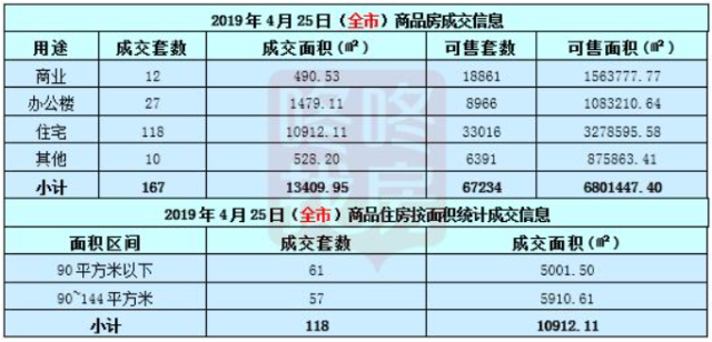 深圳商品(住)房成交信息表(4月25日)