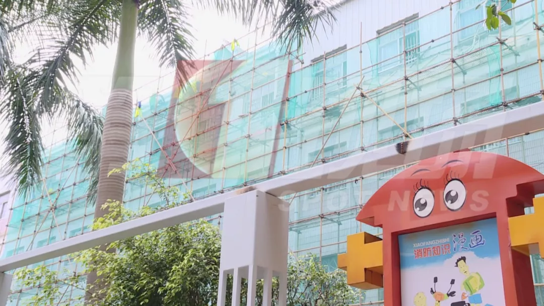 工人却在教学楼进行外墙施工