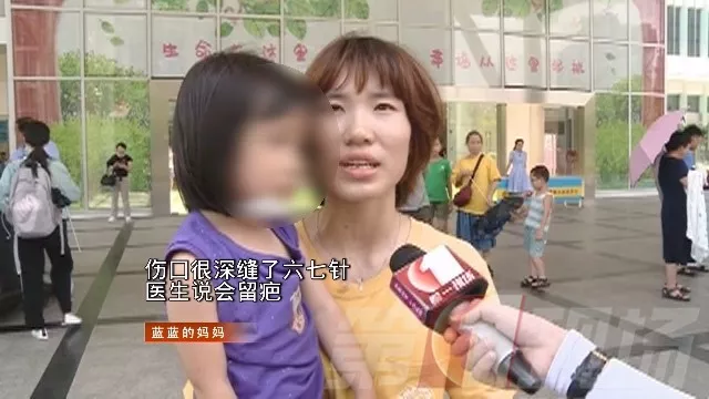 家人通过监控了解到,当时蓝蓝的妈妈正在挑选商品,蓝蓝和其他小朋友就在旁边玩耍,只见她在拐弯的时候不慎扑倒,导致下巴受伤。