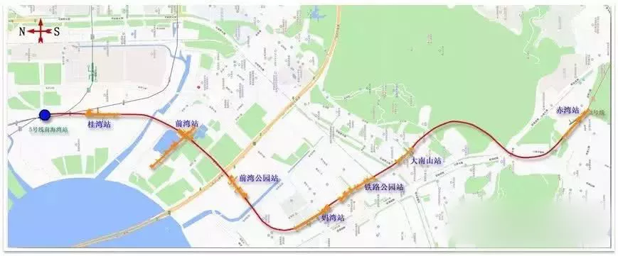 深圳地铁5号线南延线(二期工程)北起于5号线前海湾站,经前海、南山,终点与地铁2号线赤湾站换乘。