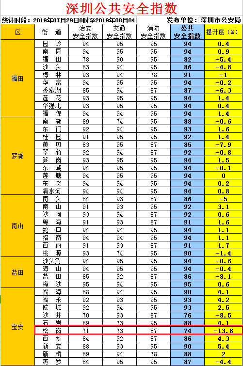 深圳最新公共安全指数发布 宝安区松岗街道74分全市垫底
