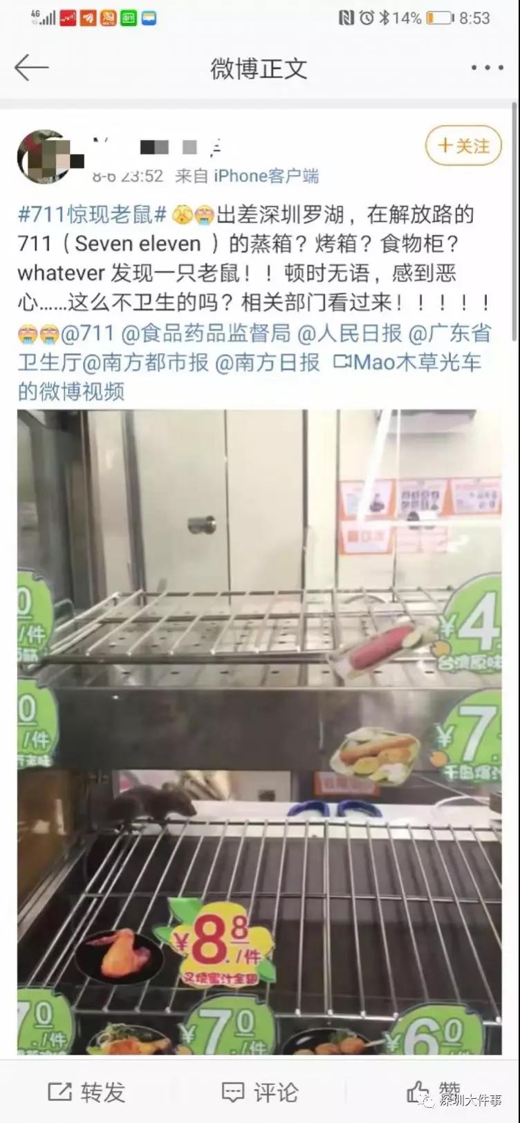 近日,有网友爆料称自己在罗湖解放路7-11便利店的热柜中发现一只老鼠