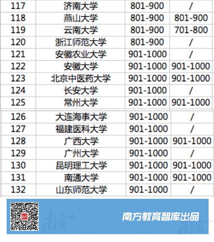 今年也出现了首次上榜的“新面孔”,广东工业大学跻身全球801-900位;广州大学排名901-1000位。