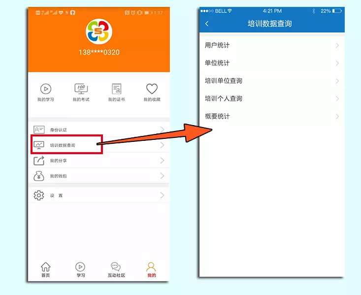 本功能仅对深圳市市场监管局等签约单位的监管人员(须经有效认证后)开放,在首页的【我的】中打开【培训数据查询】,可查询到各区、各街道、各单位和人员培训数据。