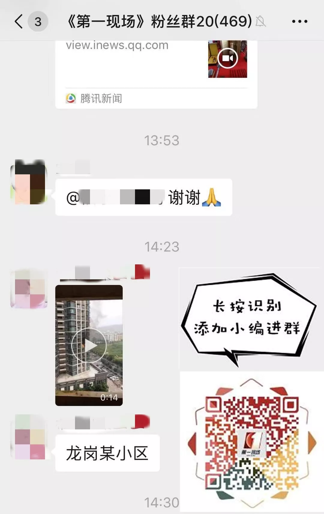 龙岗一小区高层住宅发生了火灾