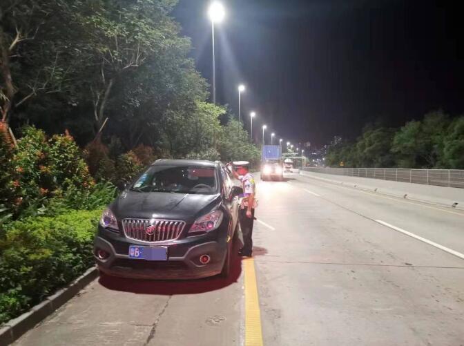据“深圳交警权威发布”微信公众号消息,2019年8月6日18时30分,黄某平无证驾驶粤B7K***黑色小型轿车从盐田三洲田准备回家。19时48分许,途经北山道—盐田隧道路段时,遇到交警设卡查车,情急之下,黄某平立马把车停在了应急车道上。