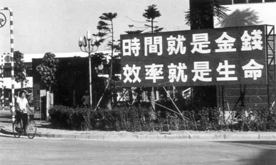 1982年,蛇口竖起“时间就是金钱,效率就是生命”的标语牌。