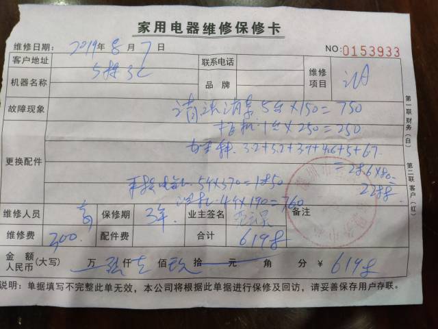 蓝先生的妹妹在58同城小助手,找到了深圳市易臣国际货运代理有限公司,并预约了上门清洗空调的服务。当师傅上门以后,除了清洗外,还说空调存在多个问题,如需要加雪种(学名“氟利昂”)、线路老化、空调漏水等,6台空调整体清洗加修理下来,蓝小姐当天共花费6618元。