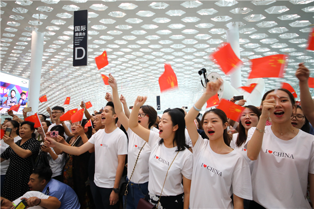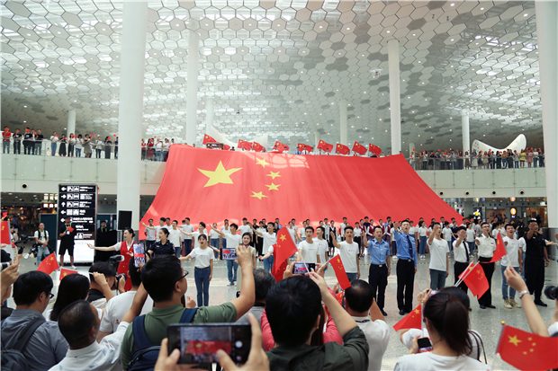 机场航站楼成“红色海洋” 他们以这种方式庆祝新中国成立70周年
