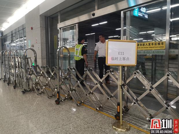 由于事故,记者在现场看到E11线公交车临时上车点更改