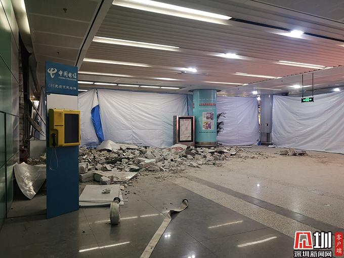 记者在事故现场看到,受损车辆已经被拖走,大厅内一地瓦砾