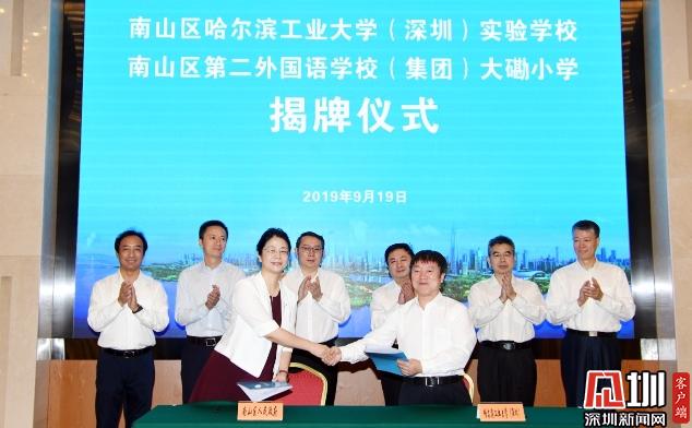 王强强调,党中央、国务院赋予深圳先行示范区的使命,对教育事业发展提出了新的要求。南山作为深圳的教育高地,肩负着更加崇高的使命和社会各界更高的期盼。他希望,作为国家“985工程”建设高校和“双一流”建设 A类高校的哈工大(深圳)能充分发挥丰富的资源优势和卓越的工科特色,与南山区精诚合作,将哈工大实验学校打造成特色显著、群众满意的现代化优质品牌学校,在优化合作办学模式的道路上做好先行示范;希望南二外集团能集聚集团智慧力量,全面推进具有80多年办学历史的大磡小学内涵发展,在提升集团化治理效能方面做好先行示范。